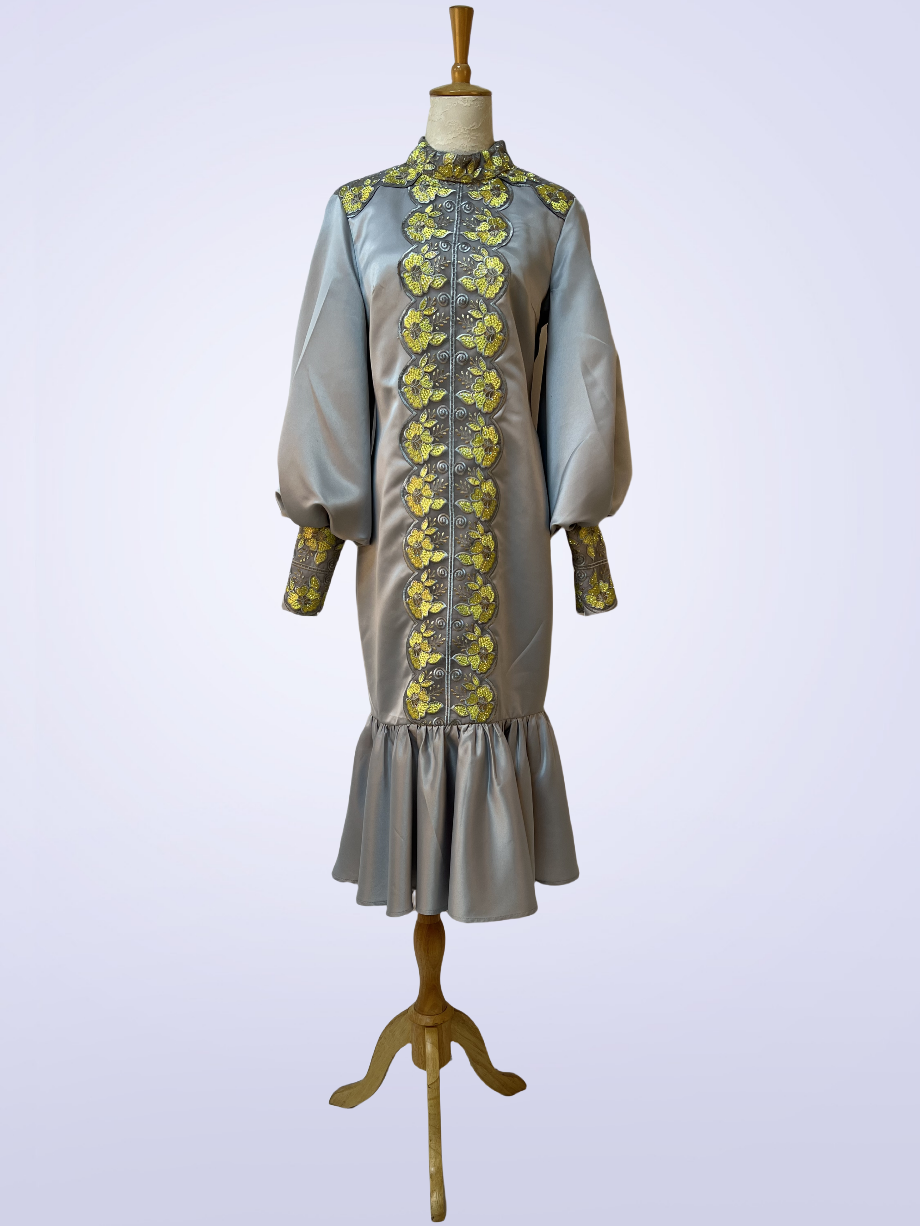 Jacquard Dress | Twill Satin Jacket | Beads