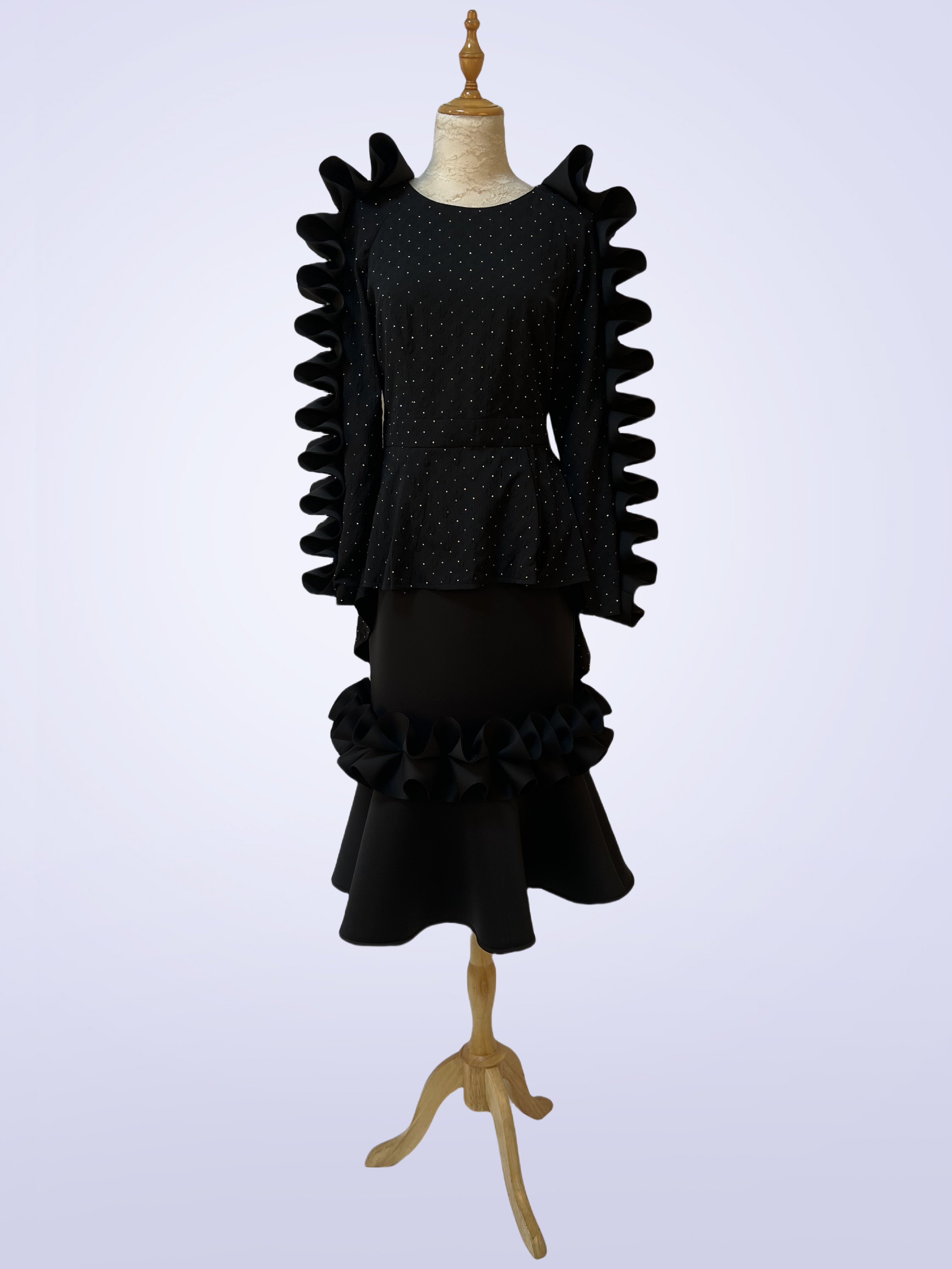 Jacquard Dress | Twill Satin Jacket | Beads