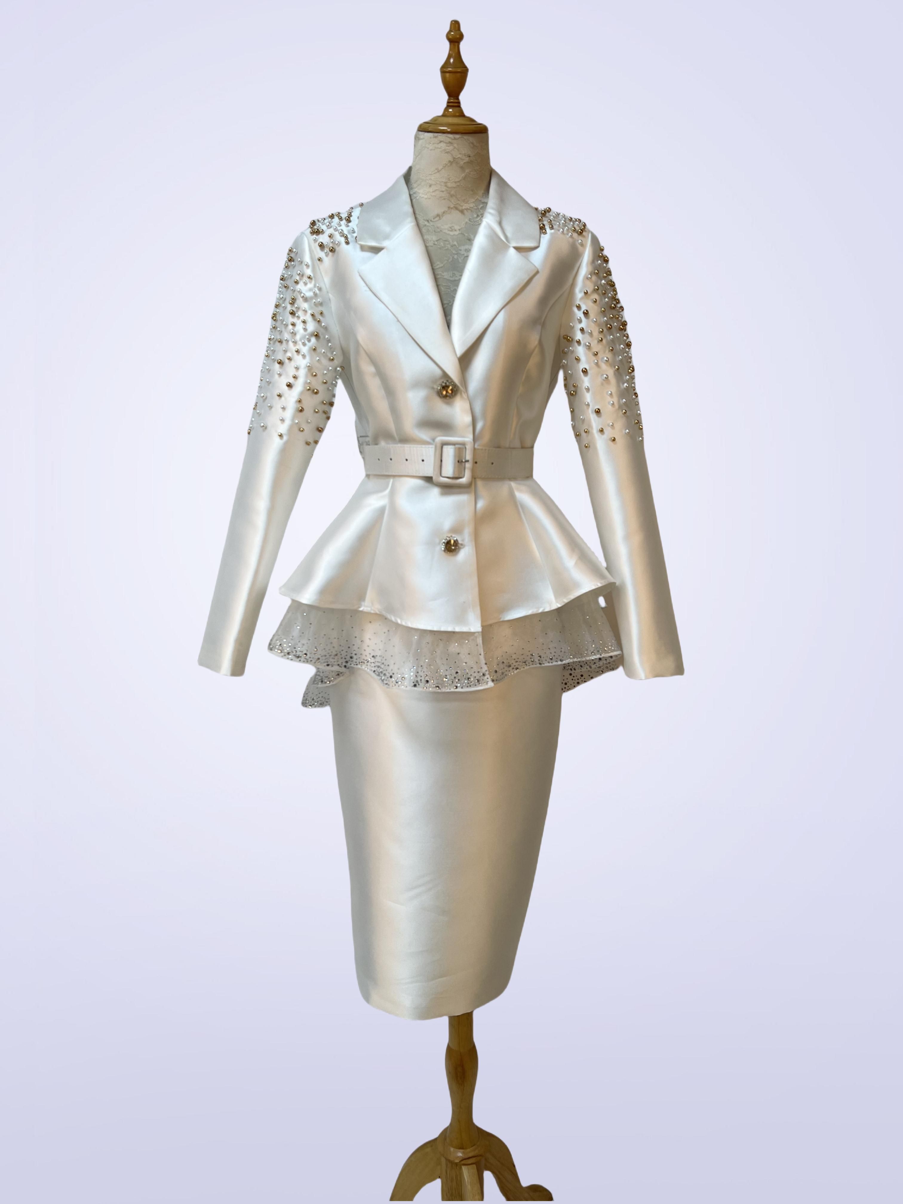 Jacquard Dress | Twill Satin Jacket | Beads
